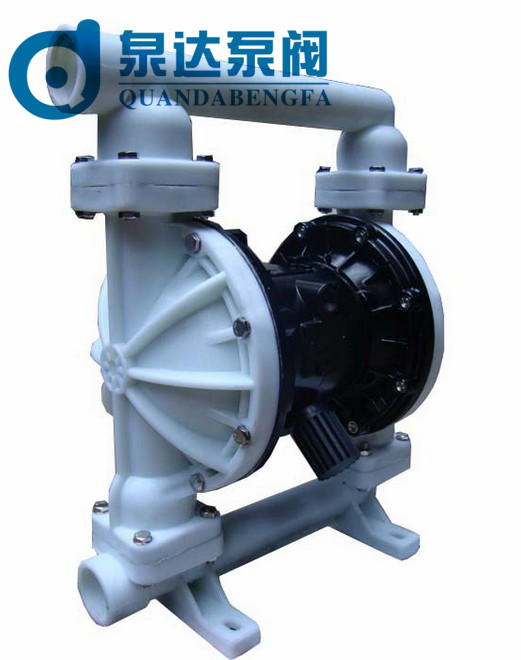 氣動工程塑料隔膜泵是永嘉縣泉達泵閥制造有限公司生產的一種新型輸送機械,工程塑料隔膜泵主要用于輸送偏酸性的液體及用戶要求泵整機重量偏輕的工況,重量輕便于移動。氣動隔膜泵已被國內一千多家石油、化工、電子、陶紡織系統單位采用,安置在種特殊場合,用來抽送各種常規泵不能抽吸的介質,均取的了滿意的效果。 泉達生產的工程塑料氣動隔膜泵也稱聚丙烯氣動隔膜泵是目前國內最新穎的一種泵類。我們公司設計的該款泵是采用壓縮空氣為動力源,對于各種腐蝕性液體,帶顆粒的液體,高粘度、易揮發、易燃、劇毒的液體,均能予以抽光吸盡。其性能參數與聯邦德國的 WLLDENPVMPS、美國的MARIOWPUMPS相近.本廠目前已形成系列化生產,共有八種規格直徑:¢10mm3/8"、¢15mm1/2"、¢25mm1"、¢40mm11/2"、¢50mm2"、¢65mm21/2"、¢80mm3"、¢100mm4"。四種材質、鋁合金、鑄鐵、不銹鋼、工程塑料隔膜泵。塑料隔膜泵根據不同液體介質分別采用丁晴橡膠、氯丁橡膠、氟橡膠、聚四氟乙烯。以滿足不同用戶的需要。